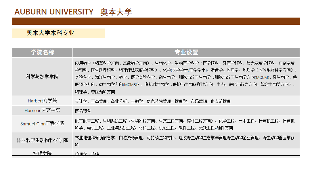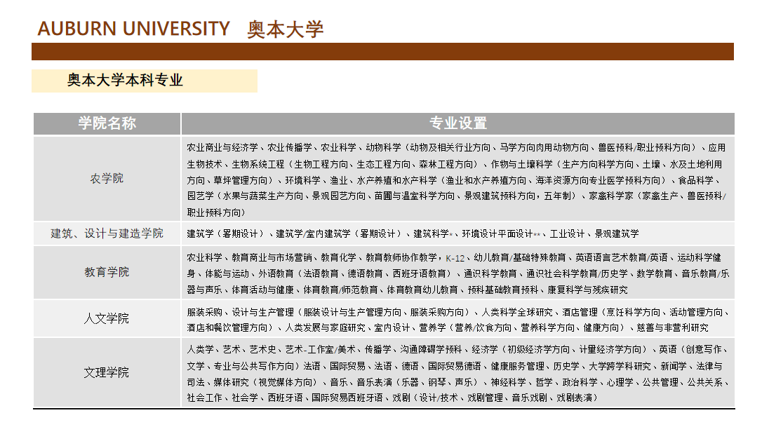 美國奧本大學本科項目介紹